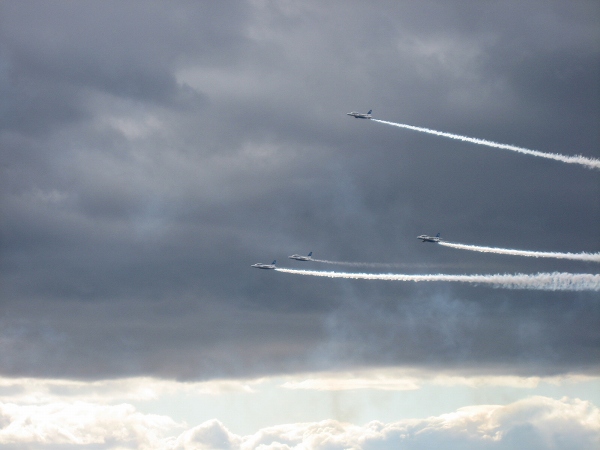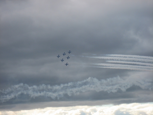 ブルーインパルスのショウがはじまり、飛行機が編隊を組んだり、曲芸飛行を披露しているのを見ている間は、何とか寒さにも耐えられましたが、さすがに限界が来たので、飛行機が着陸しはじめたのを確認して、その駐車場を後にしました。